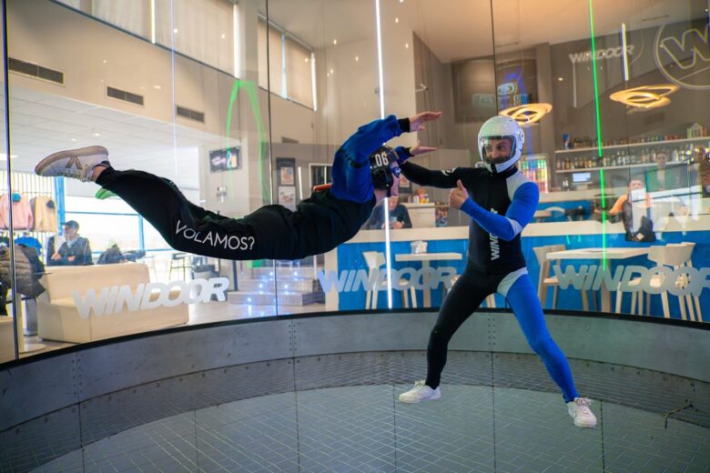 Simula la sensació de vol lliure en un túnel de vent reglamentat. Una experiència segura i apta per a tots els públics.