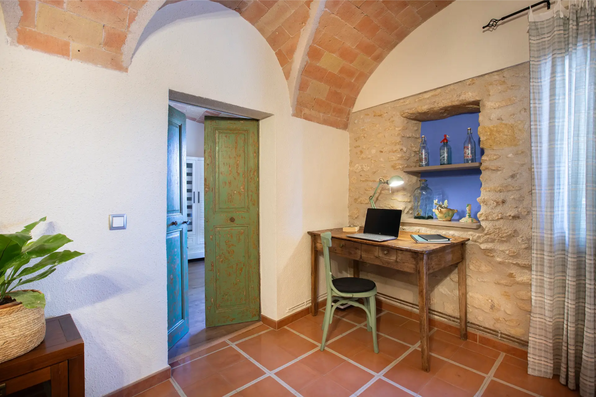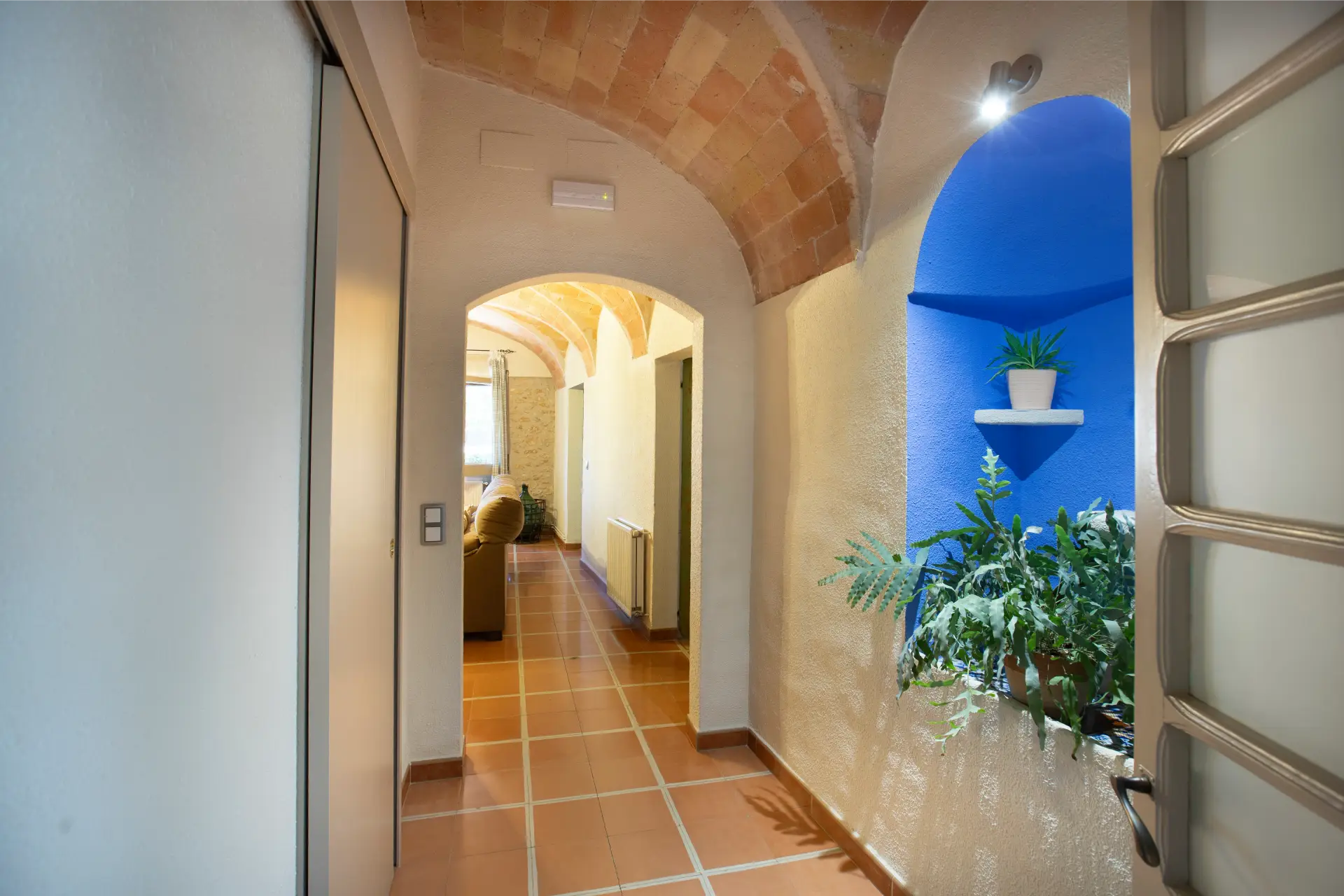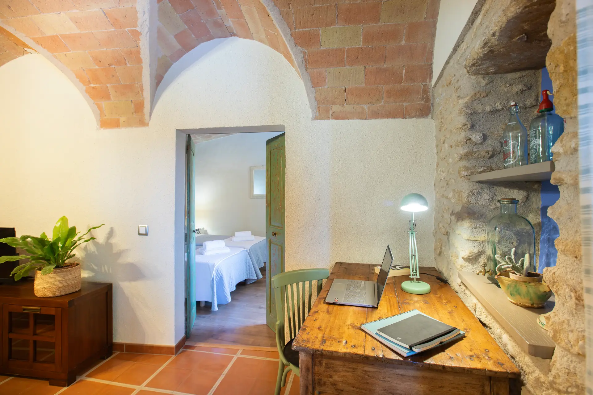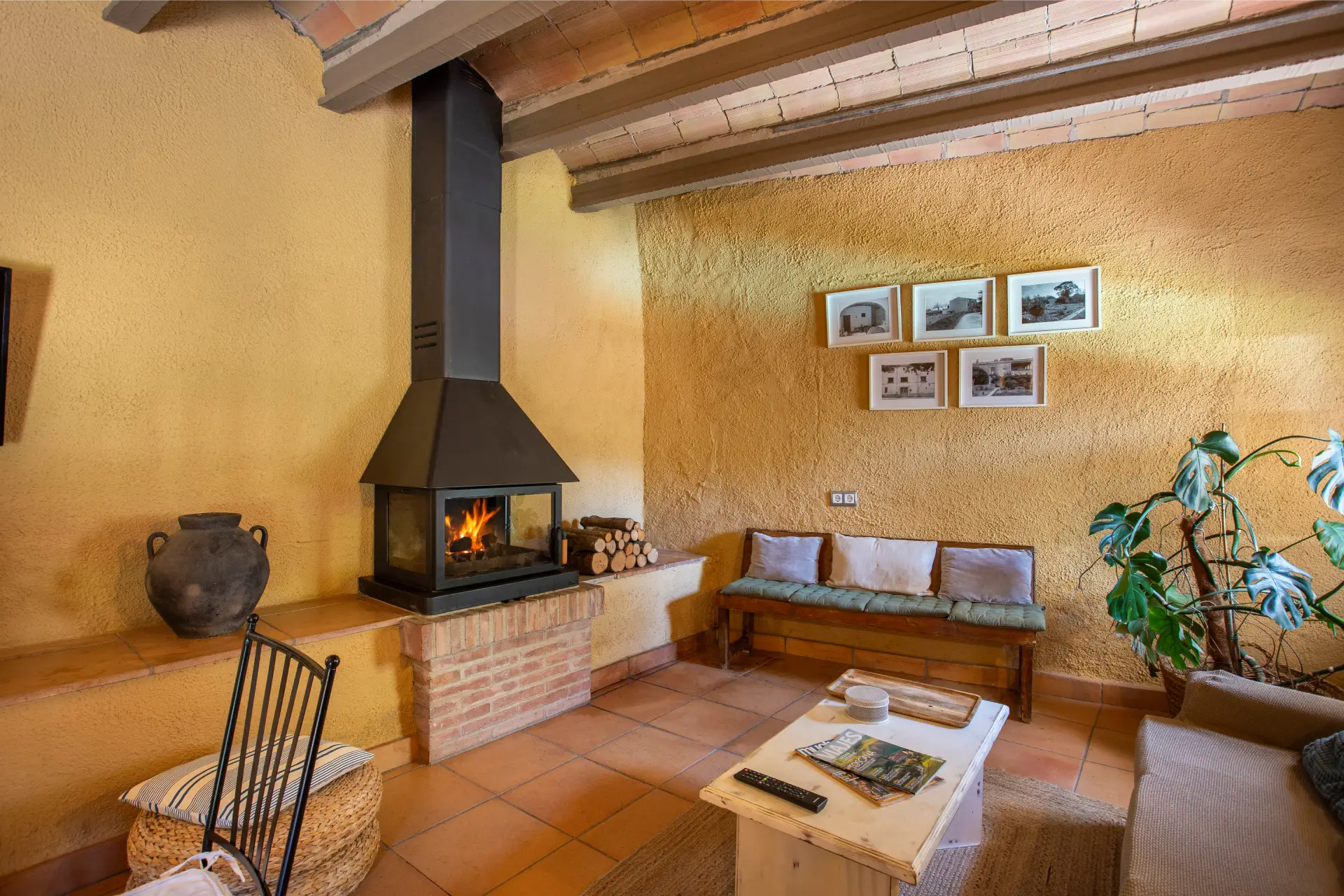 Els espais comuns de la casa estan pensats per oferir confort i moments compartits. Les dues sales d’estar permeten gaudir de la lectura, d’una conversa tranquil·la o d’una estona al costat de la llar de foc, creant una atmosfera íntima i acollidora. El menjador i la cuina, totalment equipada amb tots els estris necessaris, faciliten la preparació d’àpats en un ambient casolà i pràctic. La casa compta amb tres banys moderns i funcionals, dos dels quals sota la volta catalana, que aporta un toc d’encant i tradició. Aquests espais són ideals tant per relaxar-se com per compartir moments de convivència amb família i amics.